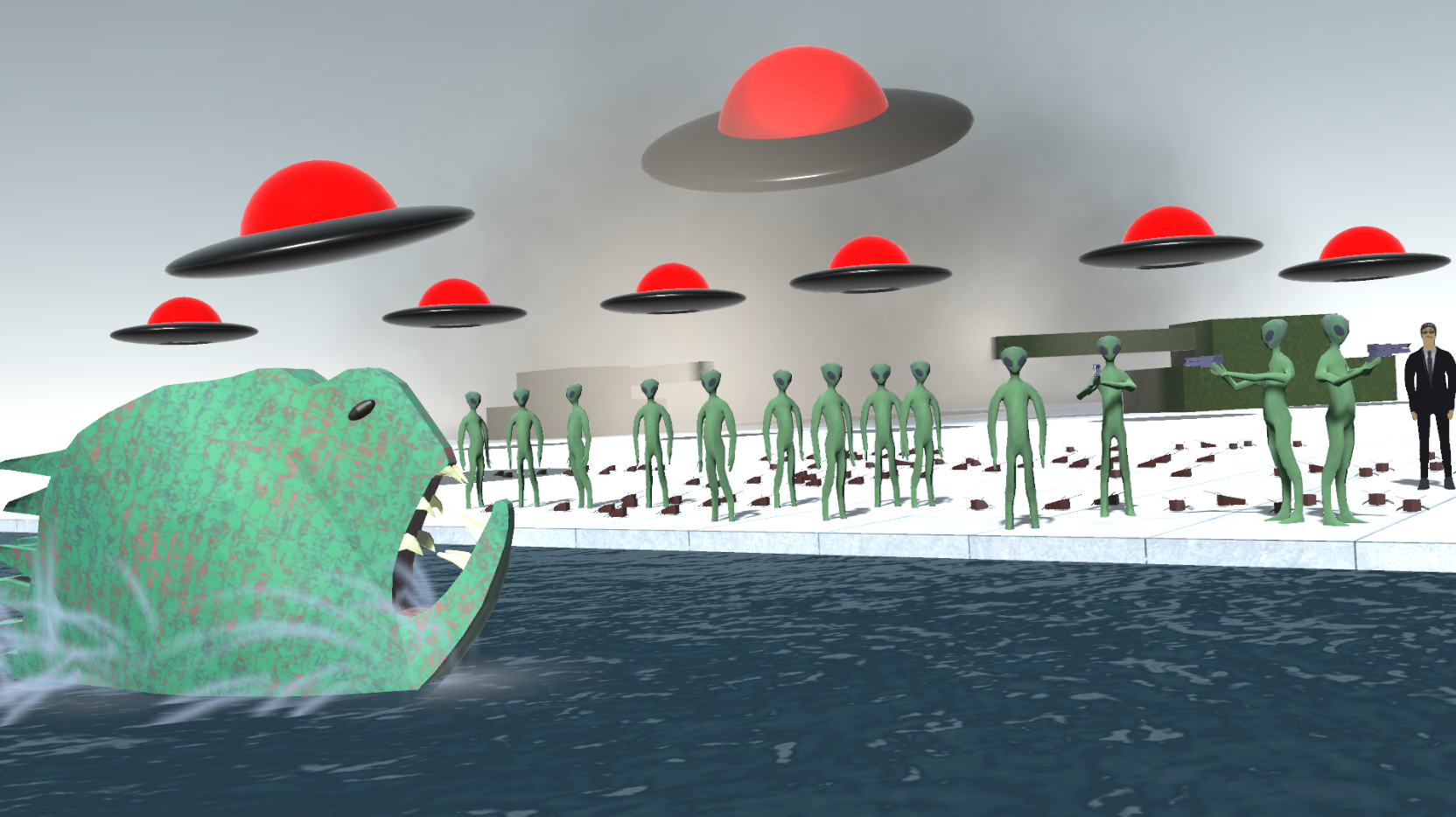 Por ahora se trata de una demo técnica sin historia ni nada. Es mi base para crear video-juegos de tiros en primera persona. Tiene muchas variedades de armas y enemigos.